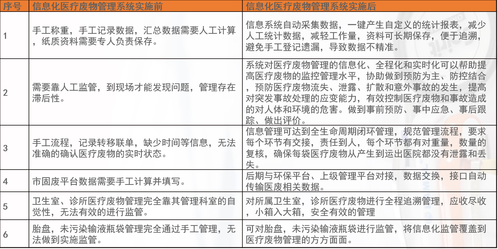 信息化对医疗废物管理的意义在于提高医疗废物管理水平、加强疾病的防控传播和保障城市安全、使得业务操作更加规范化、实现数据信息可追溯化、电子化取代传统的纸质单据。